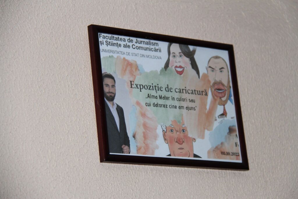 Expoziție de caricatură la Facultatea de Jurnalism și Științe ale Comunicării (FJȘC), USM, în contextul aniversării a 76 de ani de la fondarea instituției și a Zilei profesionale a lucrătorilor din învățământ.