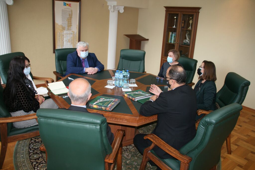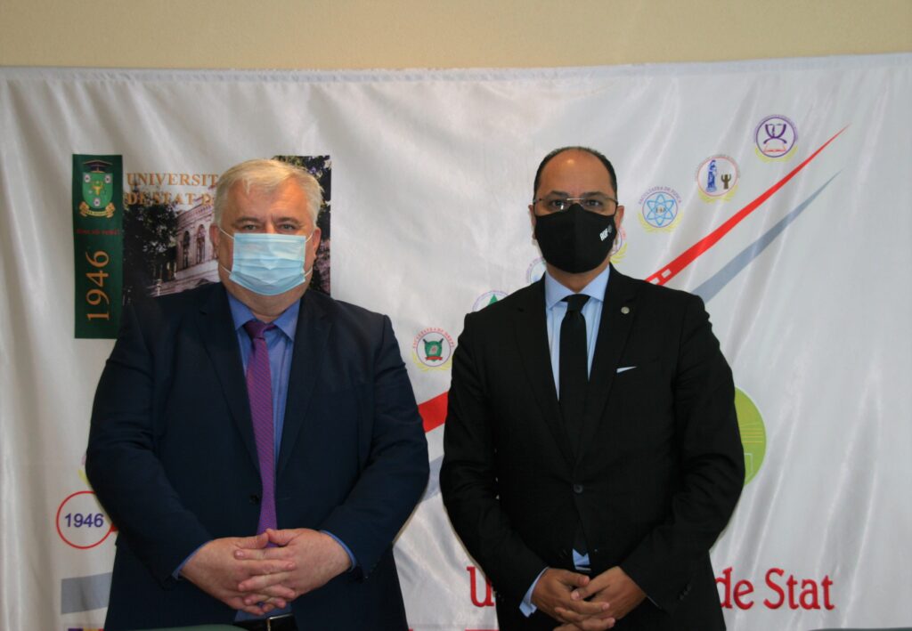 Consolidarea relațiilor de colaborare dintre Universitatea de Stat din Moldova (USM) și Agenția Universitară a Francofoniei (AUF) a fost principalul subiect discutat astăzi, 28 septembrie, de către rectorul USM, conf. univ., dr., Igor ȘAROV, prim-prorectorul pentru activitate didactică și studențească, prof. univ., dr. hab. Otilia DANDARA și prorectorul pentru management instituțional, prof.univ., dr. hab., Violeta COJOCARU, în cadrul unei întrevederi cu rectorul AUF, Slim Khalbous și directorul regional al AUF pentru Europa Centrală și Orientală, Mohamed Ketata.