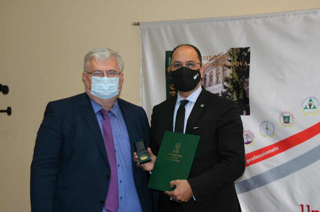 În semn de recunoștință pentru dezvoltarea francofoniei universitare solidare prin încurajarea contactelor internaționale și pentru susținerea activităților menite să promoveze excelența universitară francofonă la USM, conf. univ., dr., Igor ȘAROV a decernat diploma de onoare a Universității de Stat din Moldova rectorului AUF, Slim Khalbous și directorului regional al AUF pentru Europa Centrală și Orientală, Mohamed Ketata și medalia aniversară a USM, în contextul marcării a 75 de ani de la fondare.